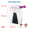 HSM SECURIO B24 Evrak İmha Makinesi / Kağıt Kırpma Makinesi – Mikro kesim 1x5mm- 34lt