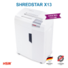 HSM SHREDSTAR X13 Evrak İmha Makinesi / Kağıt Kırpma Makinesi – CD İmha Makinesi – Çapraz/konfeti kesim 4×37 mm – 23lt