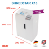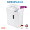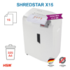 HSM SHREDSTAR X15 Evrak İmha Makinesi / Kağıt Kırpma Makinesi – CD İmha Makinesi – Çapraz/Konfeti Kesim 4×37 mm – 26lt